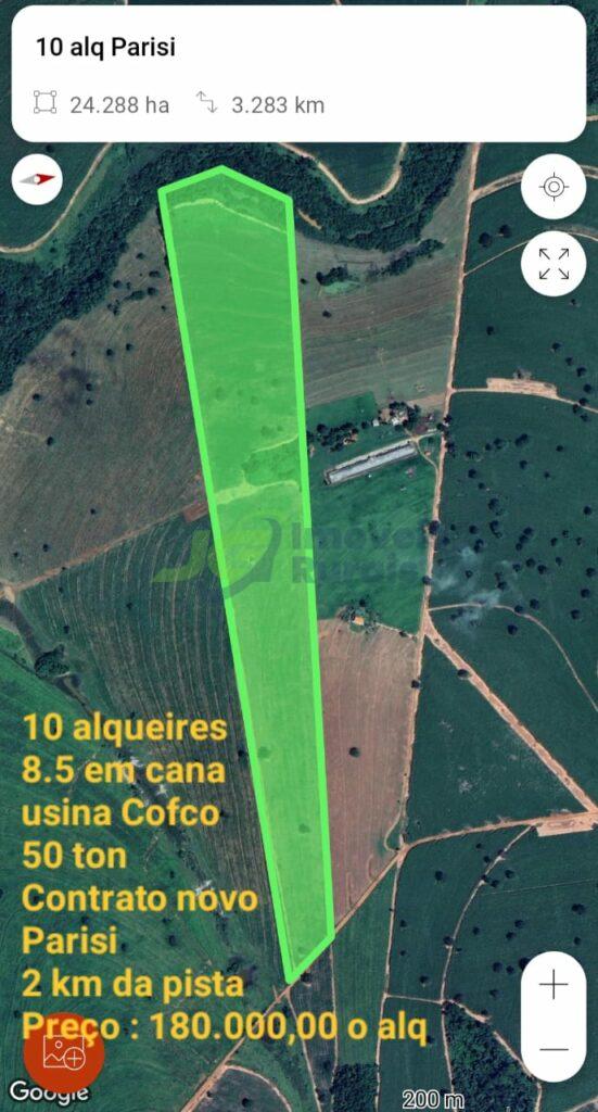 SITIO COM 10 ALQ. – 8,5 ALQ. EM CANA – USINA COFCO – PARISI – SP