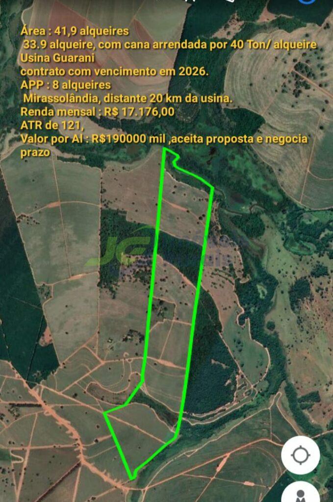 SITIO COM 41,9 ALQ. – 33,9 ALQ. EM CANA – MIRASSOLÂNDIA – SP