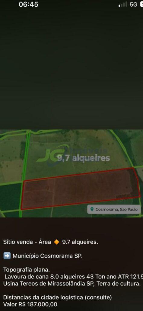 SITIO COM 9,7 ALQ. – 8 ALQ. EM CANA – MIRASSOLÂNDIA – SP