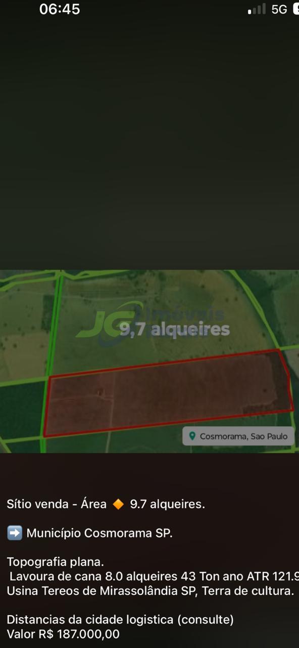 SITIO COM 9,7 ALQ. NA REGIÃO DE MIRASSOLÂNDIA – SP , 8 ALQ. EM CANA , USINA GUARANY ( TÉREOS ) A 43 A TON ANO , TERR BOA DE CULTURA .